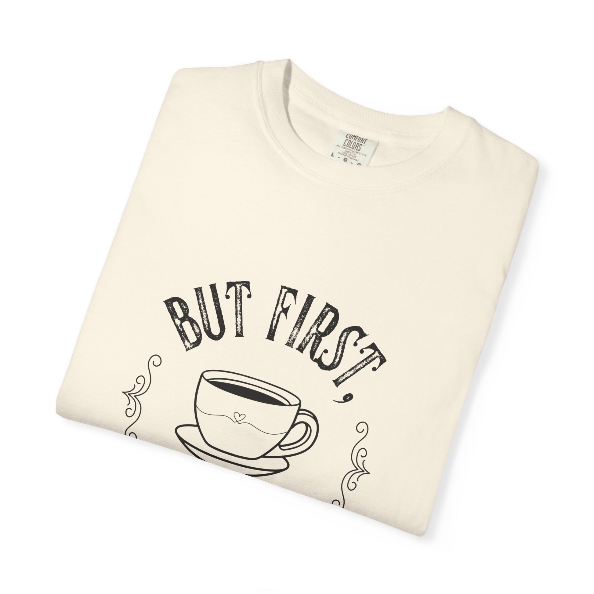 But First, Coffee T-Shirt — Casual Garment-Dyed Coffee Lover Tee