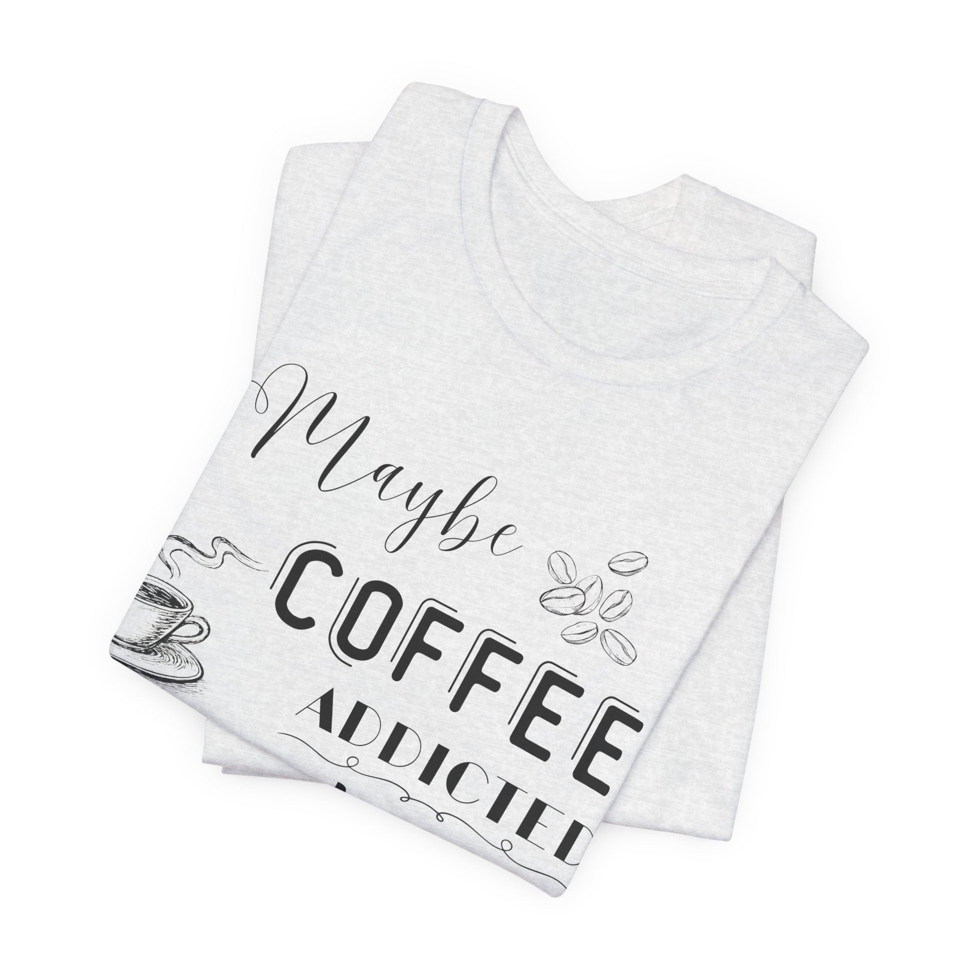 A funny and monochrome T-Shirt perfect for coffee lovers. This tee is a must-have for those who enjoy a good laugh and embrace their caffeine addiction. It's ideal for casual wear and lounging around, adding a touch of humor to everyday outfits. This tee is relevant for coffee enthusiasts, those with a great sense of humor, and makes a great gift for birthdays, Christmas, or just because.
